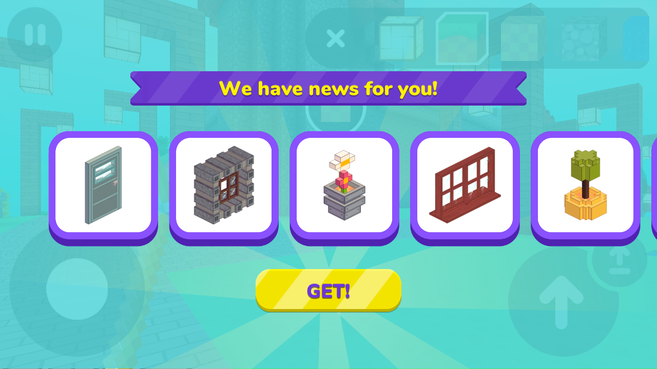 2、出现【Wehavenewsforyou】界面,点击下方的【GET!】按钮,获取展示的建筑部件,丰富建造素材。