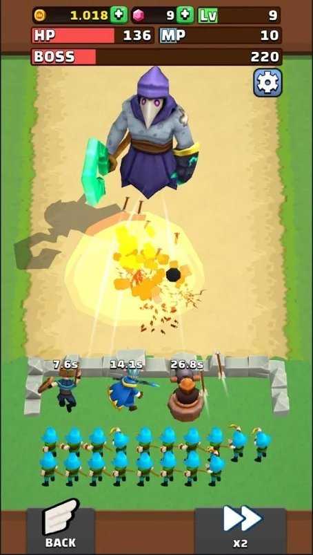 2、阵容布置策略操作:根据怪物进攻路线,在城墙关键位置部署英雄——前排放置剑士阻挡近战怪,后排集中法师与弓箭手输出,角落埋设陷阱针对高移速敌人。