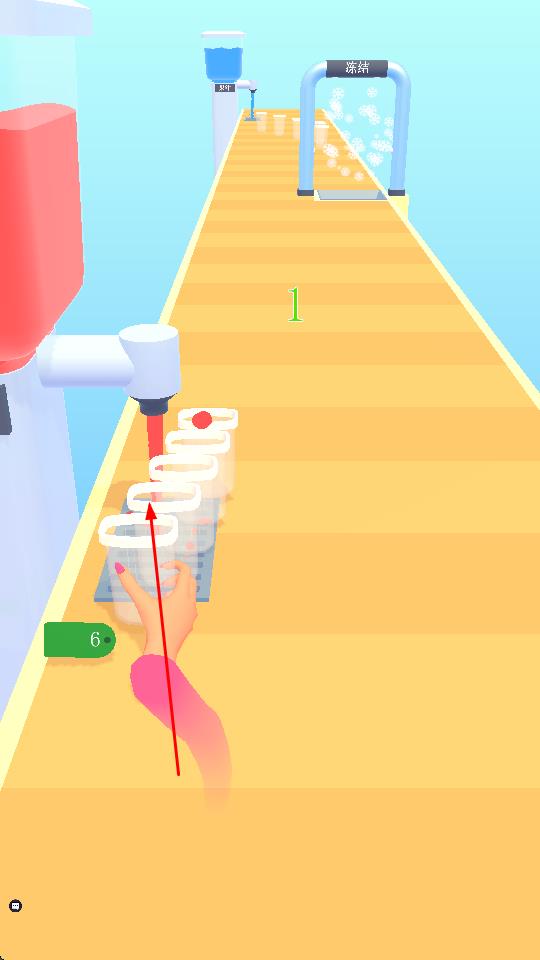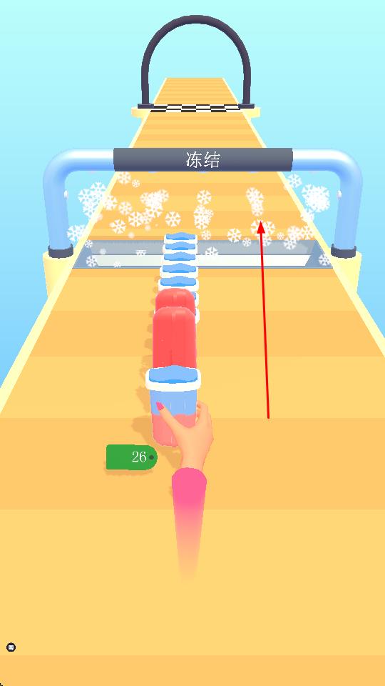 2、道路上设有标有“冻结”的区域,玩家操控物品通过该区域使果汁冰冻。