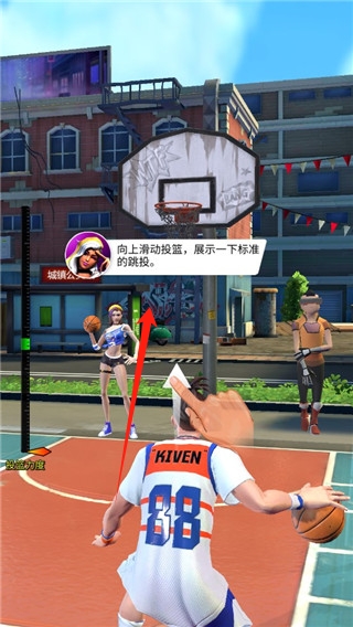3、向上滑动投篮,能量条蓄满后,在三分线内使用强力扣篮终结技,外线则选择三分远投终结,关键时刻扭转战局。