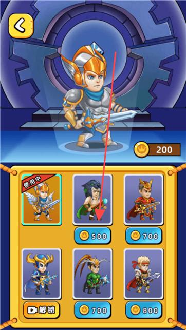 3、进入角色选择界面,花费金币(如500、700等)解锁新角色,更换更强大的角色提升实力,合理选择角色应对不同挑战,增强游戏体验。