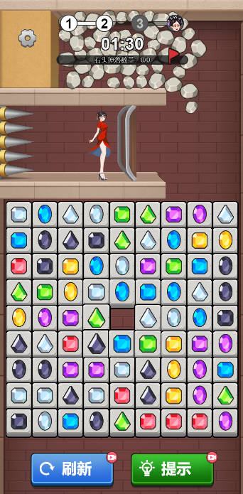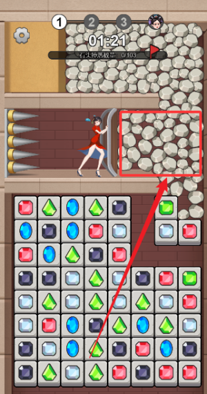 2、特殊方块机制,冰冻宝石需消除两次,锁链图案会限制移动方向。