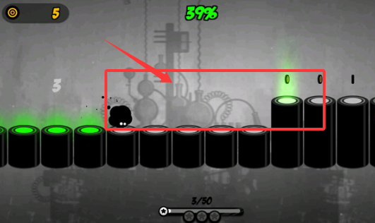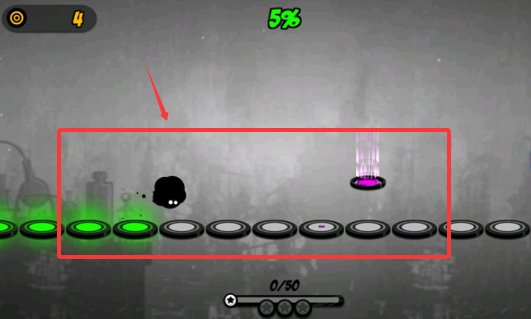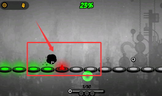 2、跳火尖刺注意在它滑至上个罗盘再按,这样才能过,使用指尖点而不是移,黑球便可穿过。