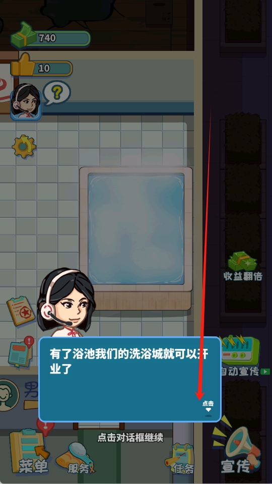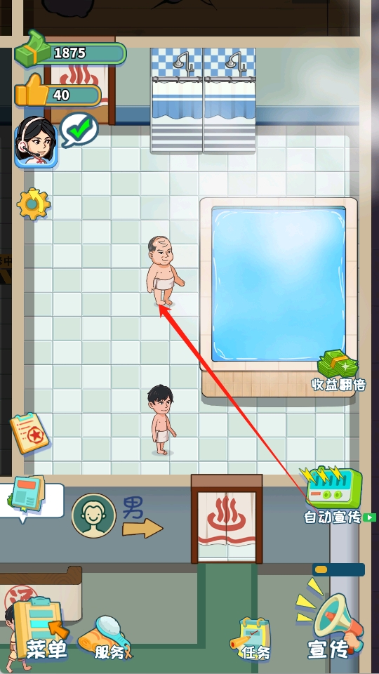 2、真实经营模拟:模拟洗浴店日常运营,包括顾客接待、服务提供、设施维护、财务管理等环节,体验真实老板视角。