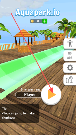 1、打开游戏“Aquapark.io”,在主界面点击【Player】输入名字,再点击播放按钮开始游戏,记住可跳跃抄近道。