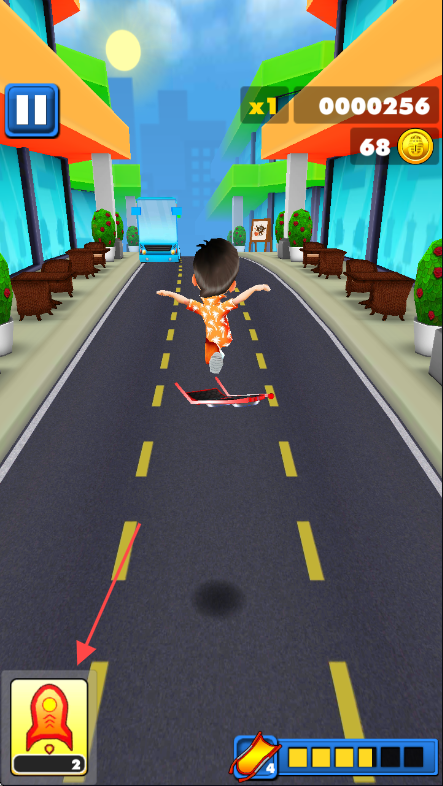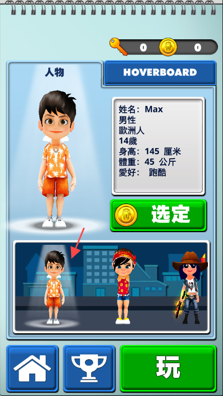 2、道具收集与角色养成:沿途收集金币、钻石可在商店兑换数十款角色皮肤(如街头滑板少年、未来科技战士)与强力道具。