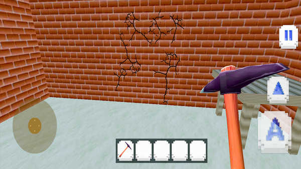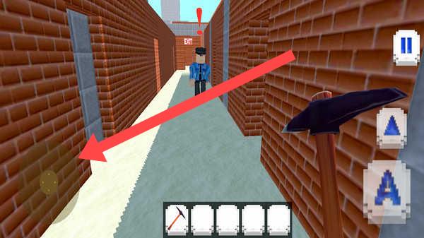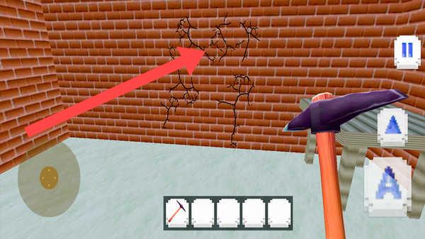 3、当接近砖墙时,点击使用镐子的按钮,用力敲击砖墙,观察砖墙的变化,为后续的行动开辟道路。