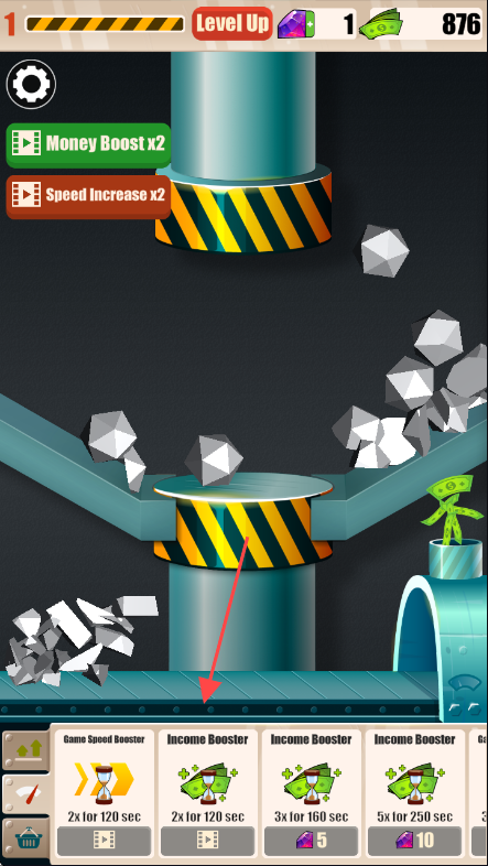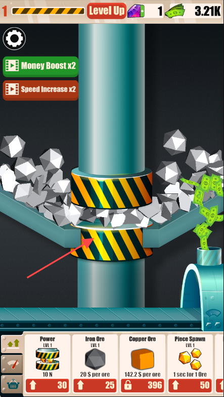 2、资源管理与设备升级:粉碎物品获得的金币可用于提升液压机功率(增加粉碎速度)、扩展物品库存(解锁稀有物体)、购买“加速道具”(短时间内无限碾压)。