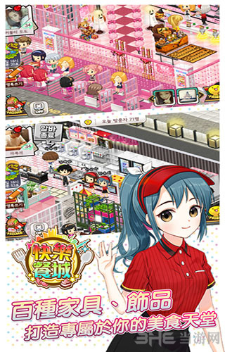 1、进入快乐餐城,在粉色主题餐厅场景中,管理店内顾客服务,提升经营效益。