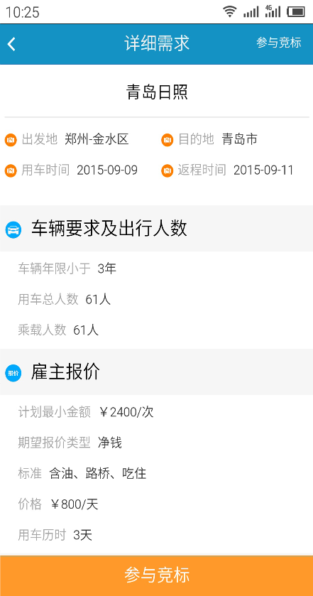 4.参与竞标:利用用车需求搜索功能,快速定位适合自己的需求并可参与竞标。
