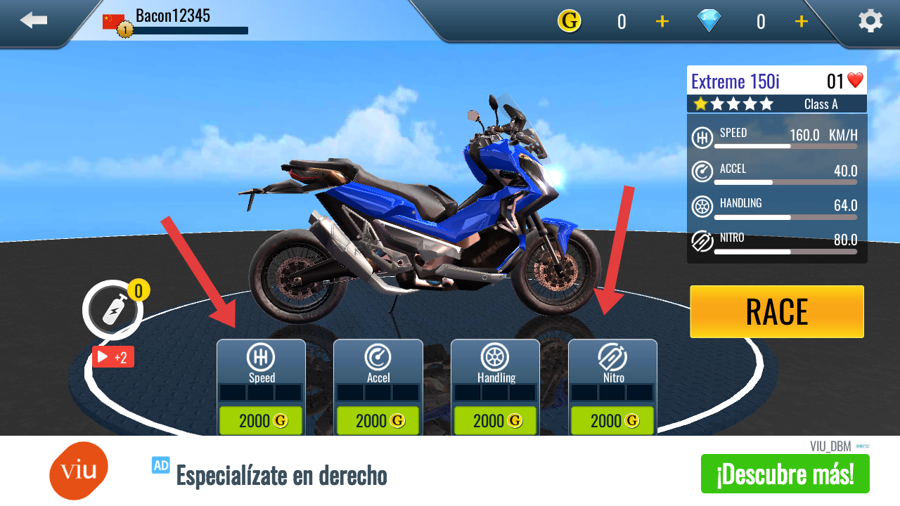 3、点RACE进入游戏后,左侧控制方向和抬车头,右侧时刹车,油门和氮气加速。