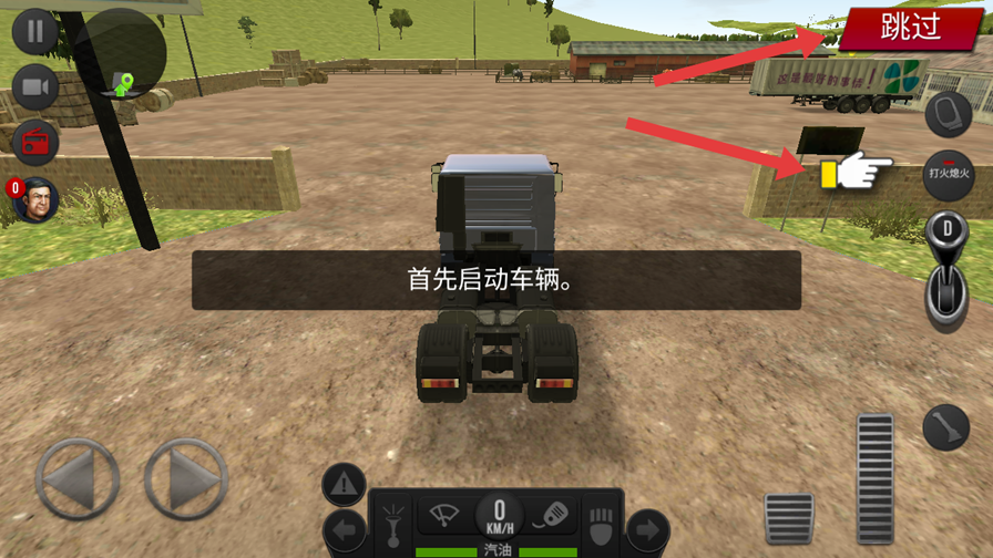 3、进入驾驶,右详细教程,跟着教程点击每个按键,熟悉按键功能,也可以点右上角跳过。