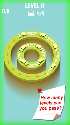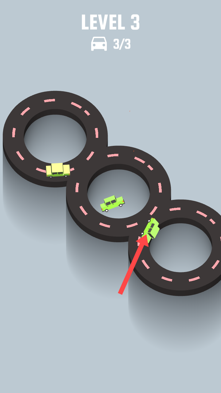 3、在【LEVEL3】界面,按箭头指引操控绿色汽车在环形道路上行驶,确保车辆顺利通过各环形路段,完成关卡目标。
