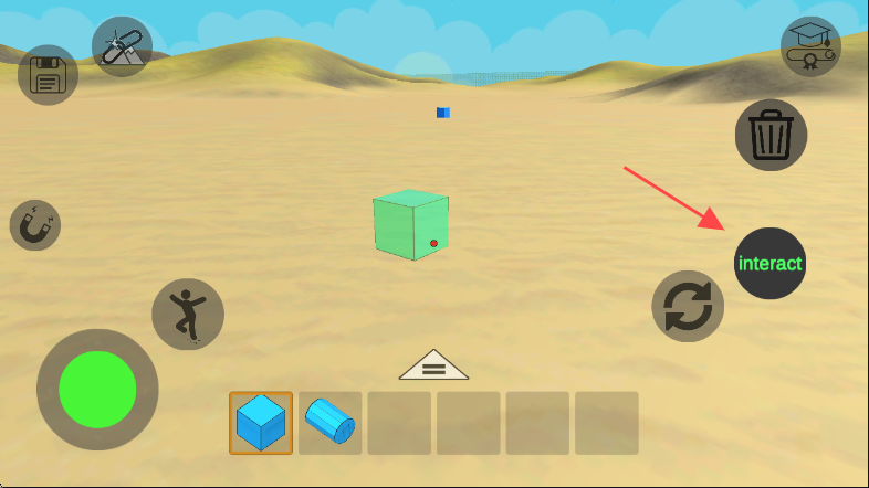 3、当场景中出现可互动元素(如方块)时,点击右侧的【interact】按钮进行放置,推动游戏进程。