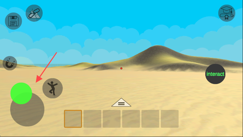 2、在游戏操作界面,左下角的绿色圆形按钮用于控制角色移动,通过点击或滑动来操控角色方向。
