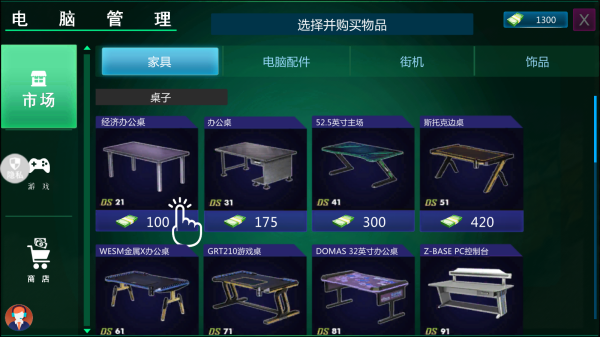 3、展示了电脑管理中的购物界面,根据操作提示【选择并购买物品】,玩家可在此选择购买物品来管理或装饰场所。