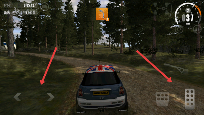 3、进入试驾点击比赛,加速向前,在拐弯处左手转向的同时,右手快速连点刹车和油门。