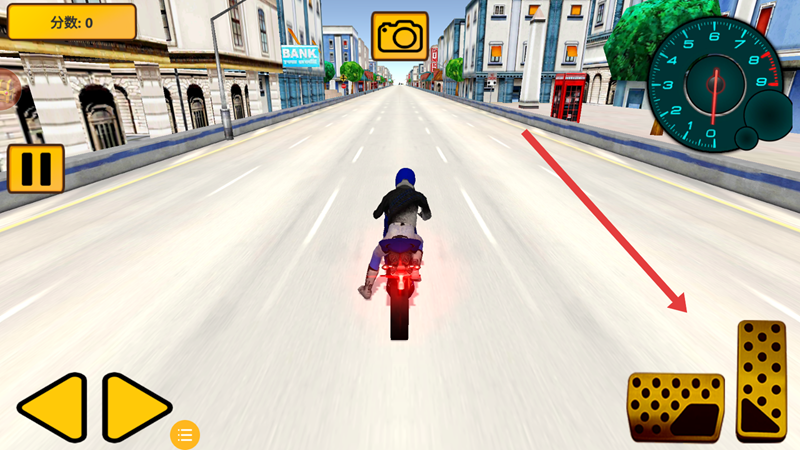 2、点击开始进入游戏,右侧长踏板为油门,长按踏板,加速超越其他车辆。