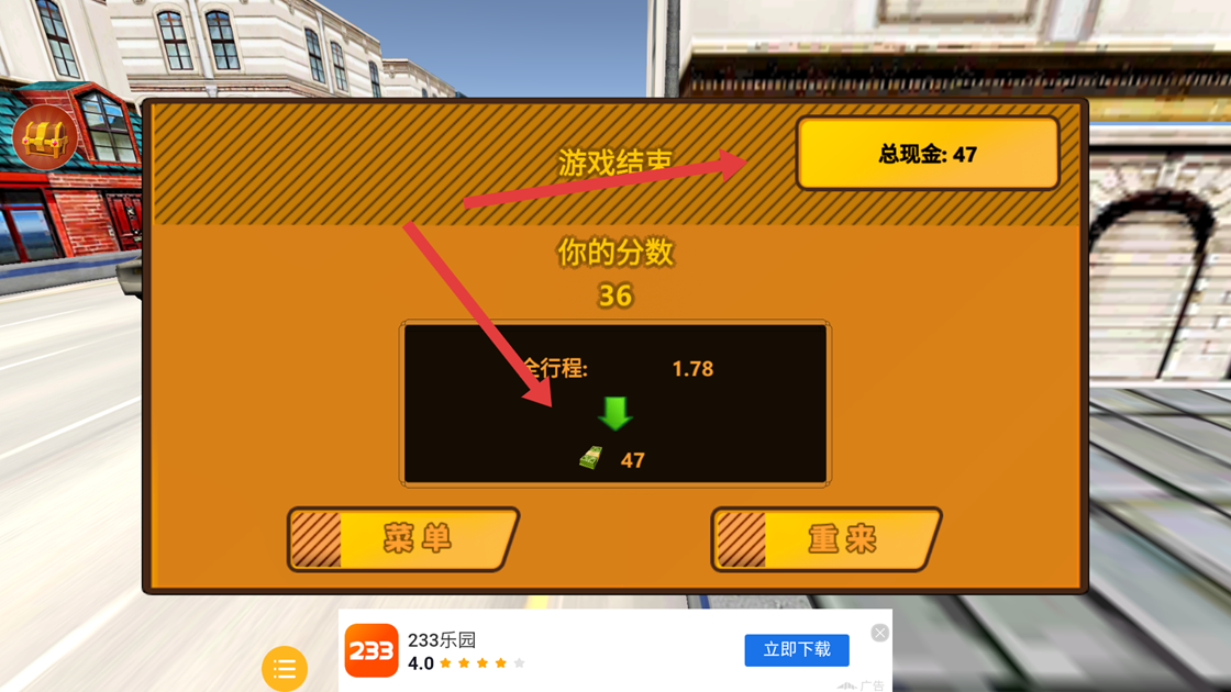 3、任务完成后,可以根据成绩,赚取对应金额,点击菜单回到主界面。