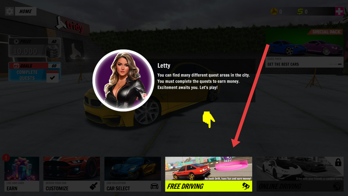 1、安装完成后,打开游戏,按照任务提示,点击下方自由模式。