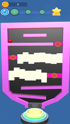 1、基础躲避操作:滑动屏幕控制球球左右移动,避开静态尖刺、动态齿轮等障碍物,在无尽坠落中挑战生存极限,目标明确易上手。