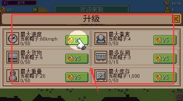 2、通过升级可以更改火车头提高速度,还能升级车厢,增加车厢的长度。