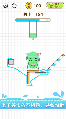 3、脑洞解谜玩法:部分关卡需打破常规思维,如利用镜面反射引导多股水流同时混合,或通过折叠线条创造捷径,激发创意潜能。