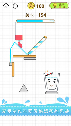 3、成功完成关卡指定调配任务后,解锁新口味配方与装饰道具,带着升级的画线技巧挑战后续更复杂的奶茶制作关卡。