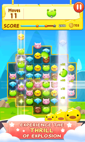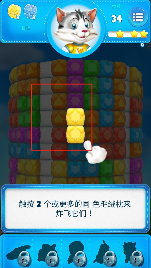 3、按照提示,触按2个或更多同色毛绒枕将其炸飞,朝着完成目标努力。