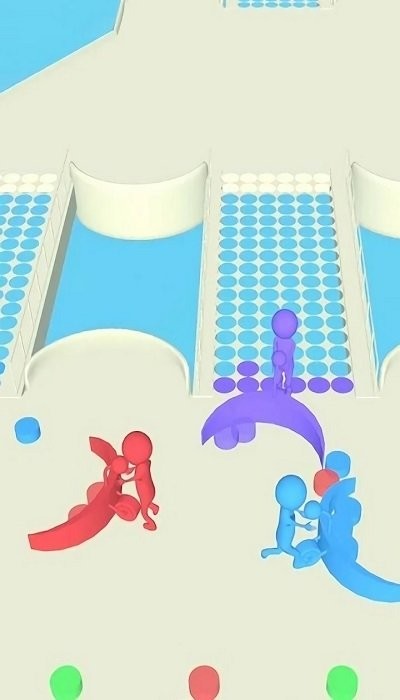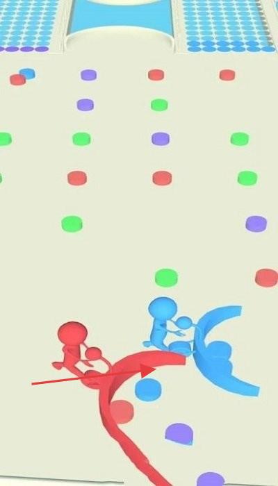 2、场上存在其他颜色小人,玩家需与他们竞争,通过碰撞等方式干扰对手,抢夺圆点资源。