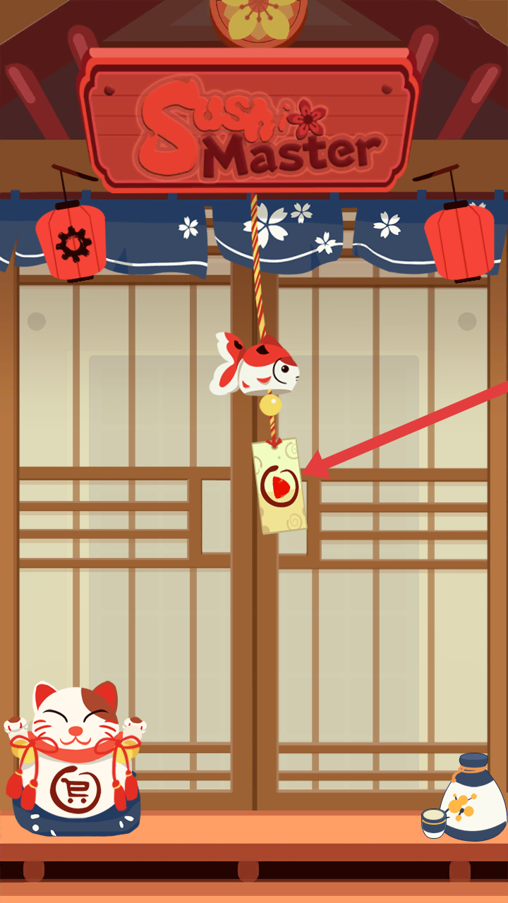 1、进入游戏的主界面后,你需要点击箭头所指的悬挂饰牌,正式开启料理之神的游戏。