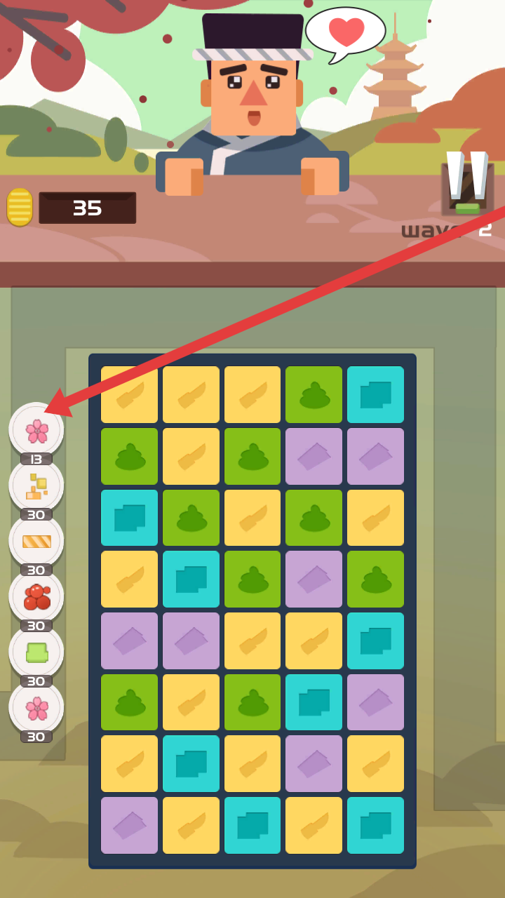 3、当左侧道具(如粉色花朵图标)可用时,点击使用道具,助力游戏进程,提升游戏体验。