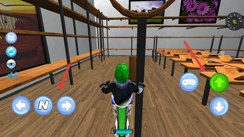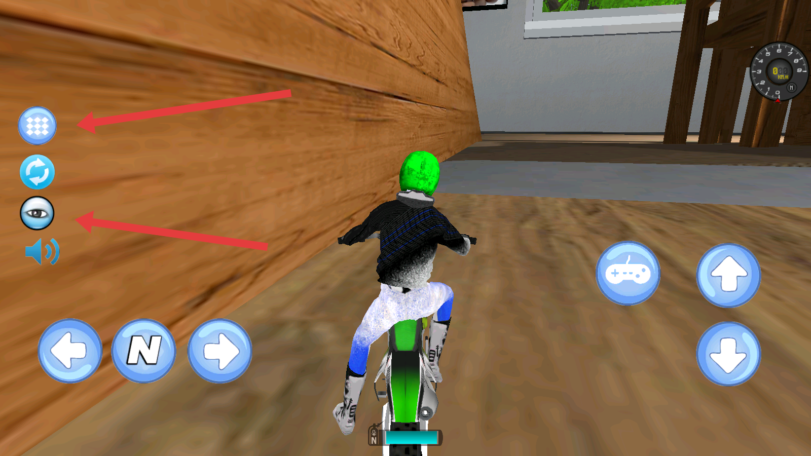 2、进入驾驶界面,左侧三个按键分别可回到主界面,重新开始和切换视角。