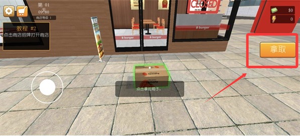 2、当靠近物资箱时,将圆点调整到箱子上靠近,会出现交互按钮,点击拿起即可。