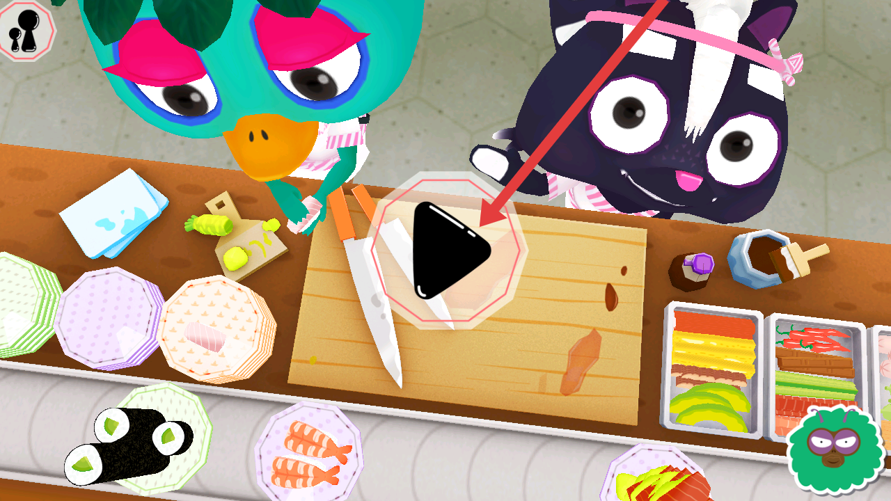 1、订单式寿司制作:根据动物客人的订单要求,点击滑动屏幕选取对应食材,按比例搭配制作寿司,确保在规定时间内完成,避免客人等待过久影响口碑。