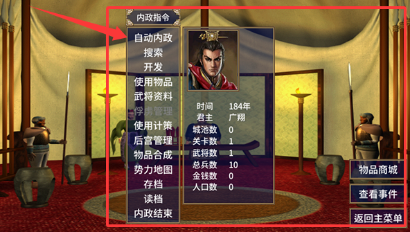 3、进入内政经营模式,所占领的城市都会有税收进帐,人口数的提高将使此城能有更多的税收并提高预备兵上限。