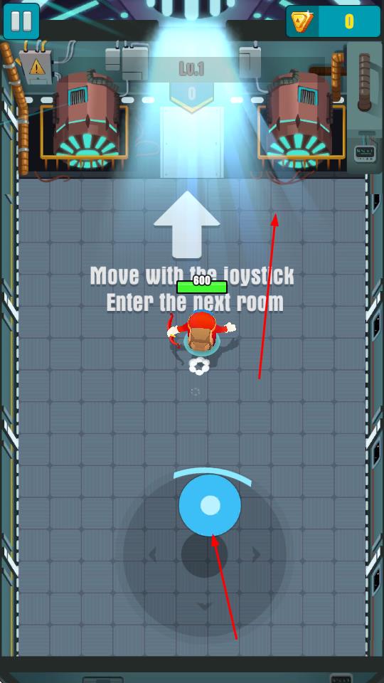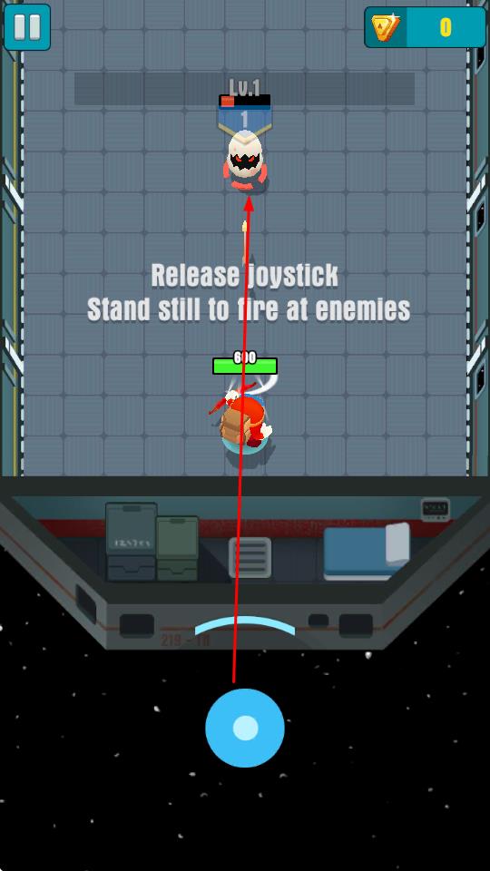 1、玩家通过虚拟摇杆操控红色角色移动,松开摇杆可让角色站住并向敌人射击,削减敌人血量。