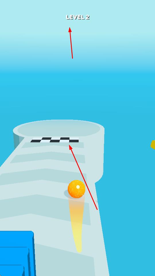 2、小球在道路上不断前进,成功通过当前关卡,进入下一关卡如LEVEL2。