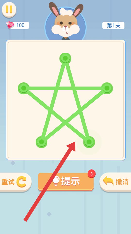 1、进入游戏直面首关简单点阵图,点击屏幕拖动线条连接对应颜色节点,在引导教程中熟悉一笔画规则,开启连线挑战初体验。