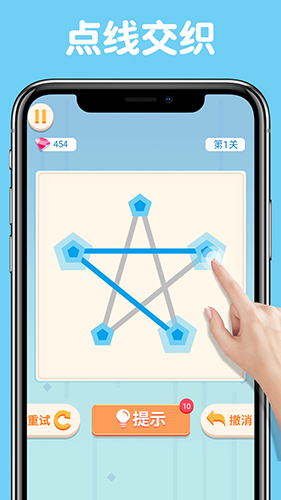 连线高手集多元益智玩法于一体的休闲游戏,以连接为核心打造从简单到烧脑的挑战体验,通过点击滑动屏幕完成点线连接、图案拼接等任务,既能轻松上手,又能在复杂谜题中锻炼逻辑思维与空间想象力,巧妙融合疯狂连线,方块拼图等经典益智元素,搭配舒缓音效与动态视觉反馈,在碎片化时间中享受解谜乐趣的同时,收获思维能力的提升。