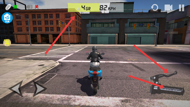 3、车把参照真实结构,油门和刹车结合,屏幕上方的进度条可显示油量和档位信息。