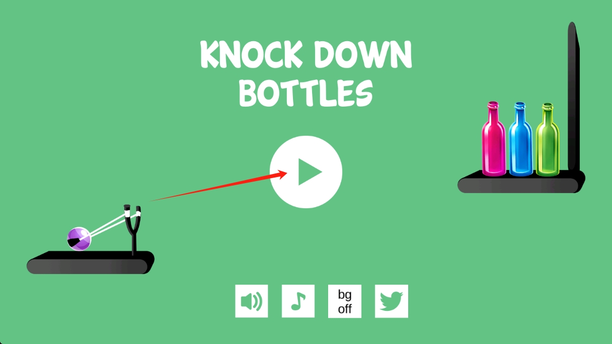 1、打开击倒瓶子,点击主界面播放按钮,进入用弹弓击倒瓶子的挑战。