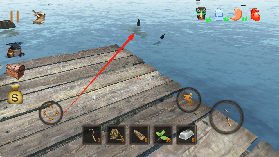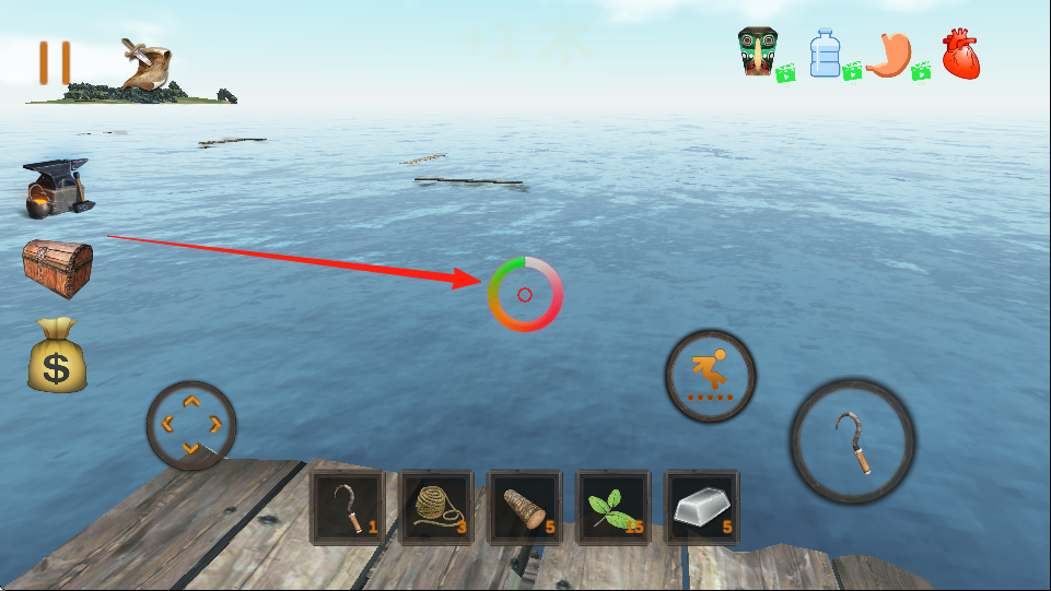 1、初期优先收集木板与塑料,搭建基础木筏结构,建造雨水收集器解决饮水问题,制作简易鱼竿获取食物,注意保持木筏平衡,避免因负重不均导致翻覆。