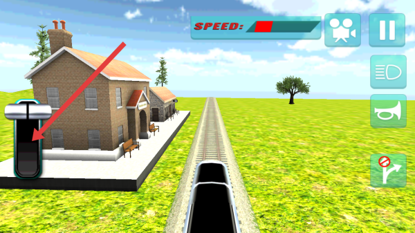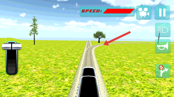 2、在游戏游玩过程中,通过操控左侧的控制杆调节火车速度,观察【SPEED】速度条合理加速。