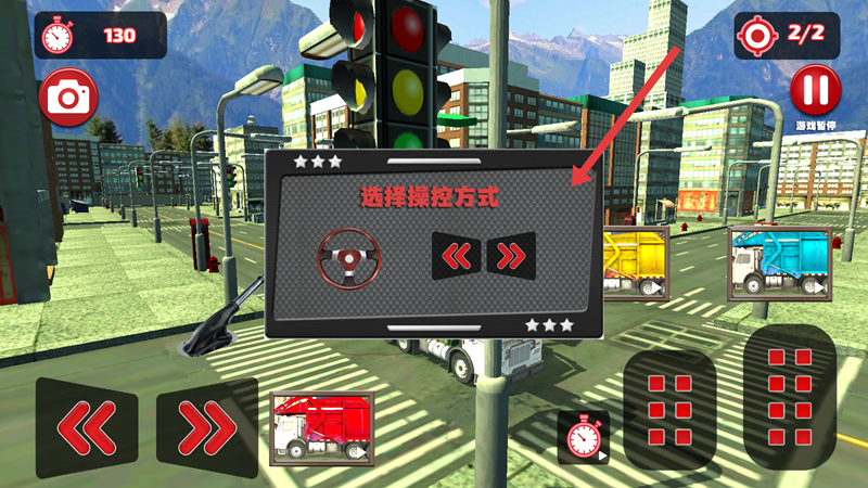 3、进入驾驶,选择驾驶方式,左手控制转向,右手负责制动和加速,支持暂停。