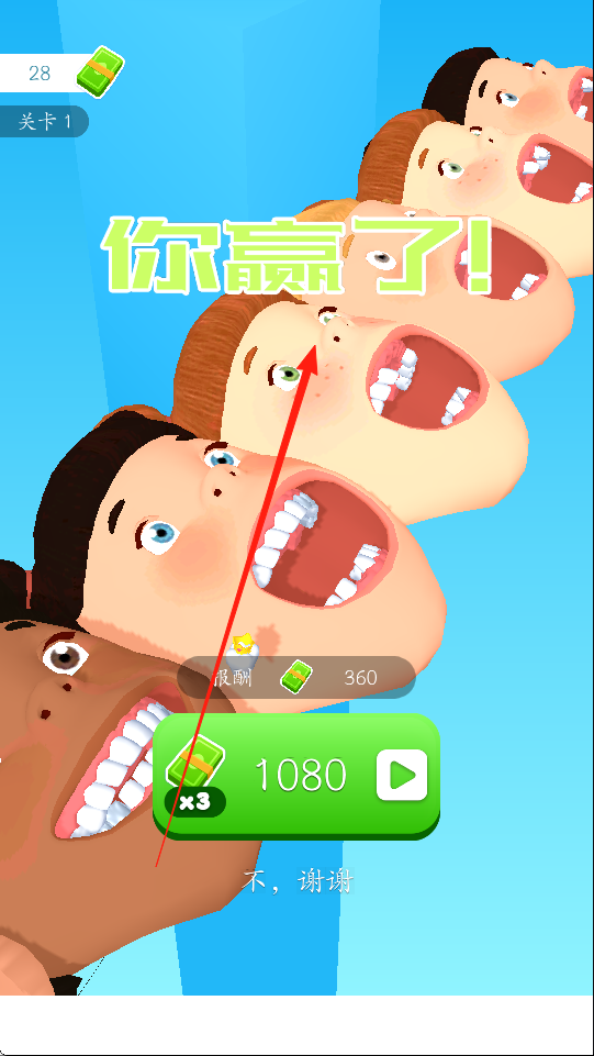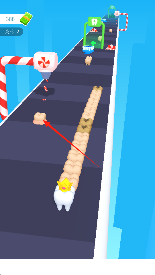 3、深度养成系统:通过收集金币与道具升级牙齿属性,解锁技能分支,强化特殊能力,打造专属于自己的最强冲刺者。