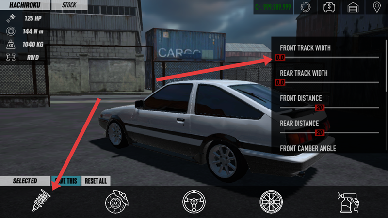 2、选择需要改装的对应部件,然后按住红色的数值滑动,对车辆的每个部位细致微调。