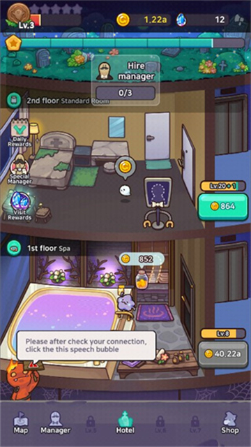 4、可招募各种风格独特的小幽灵员工,根据特长分配岗位,让酒店运作更高效。