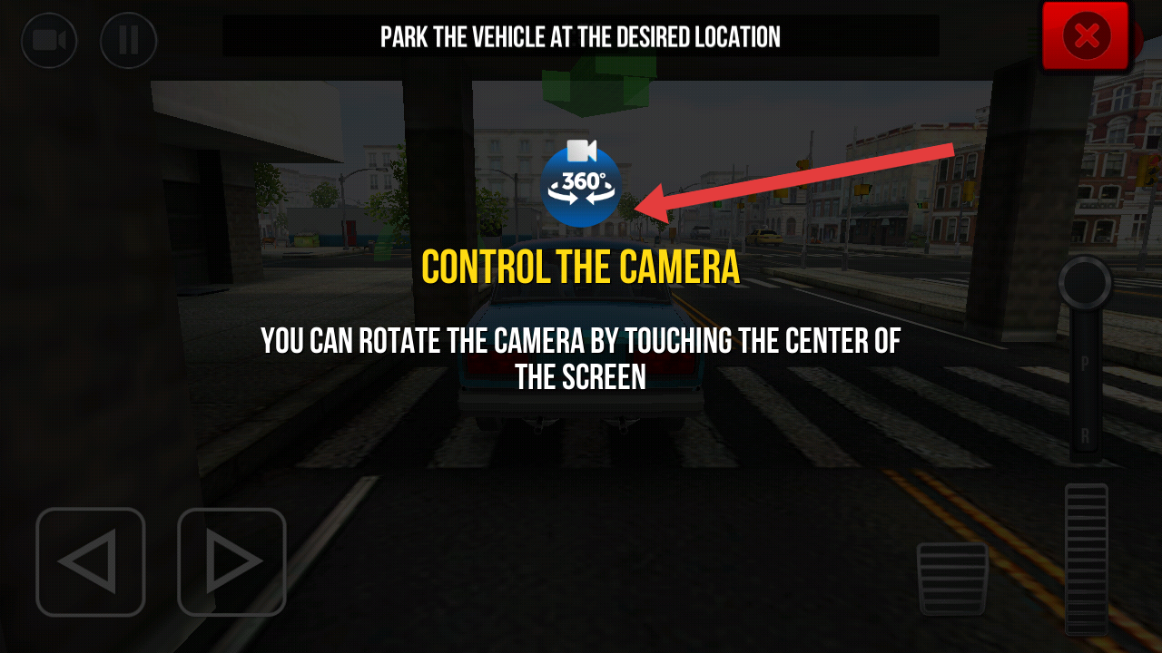 2、游戏中通过点击【360°】图标控制摄像头,可触摸屏幕中心旋转摄像头,方便观察车辆周围环境。