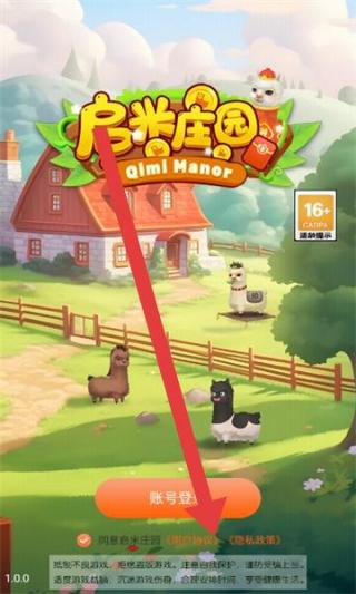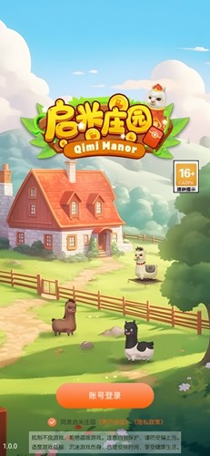 3、回到游戏主界面,点击【账号登录】按钮,使用已注册账号登录,即可进入启米庄园游戏开始游玩。